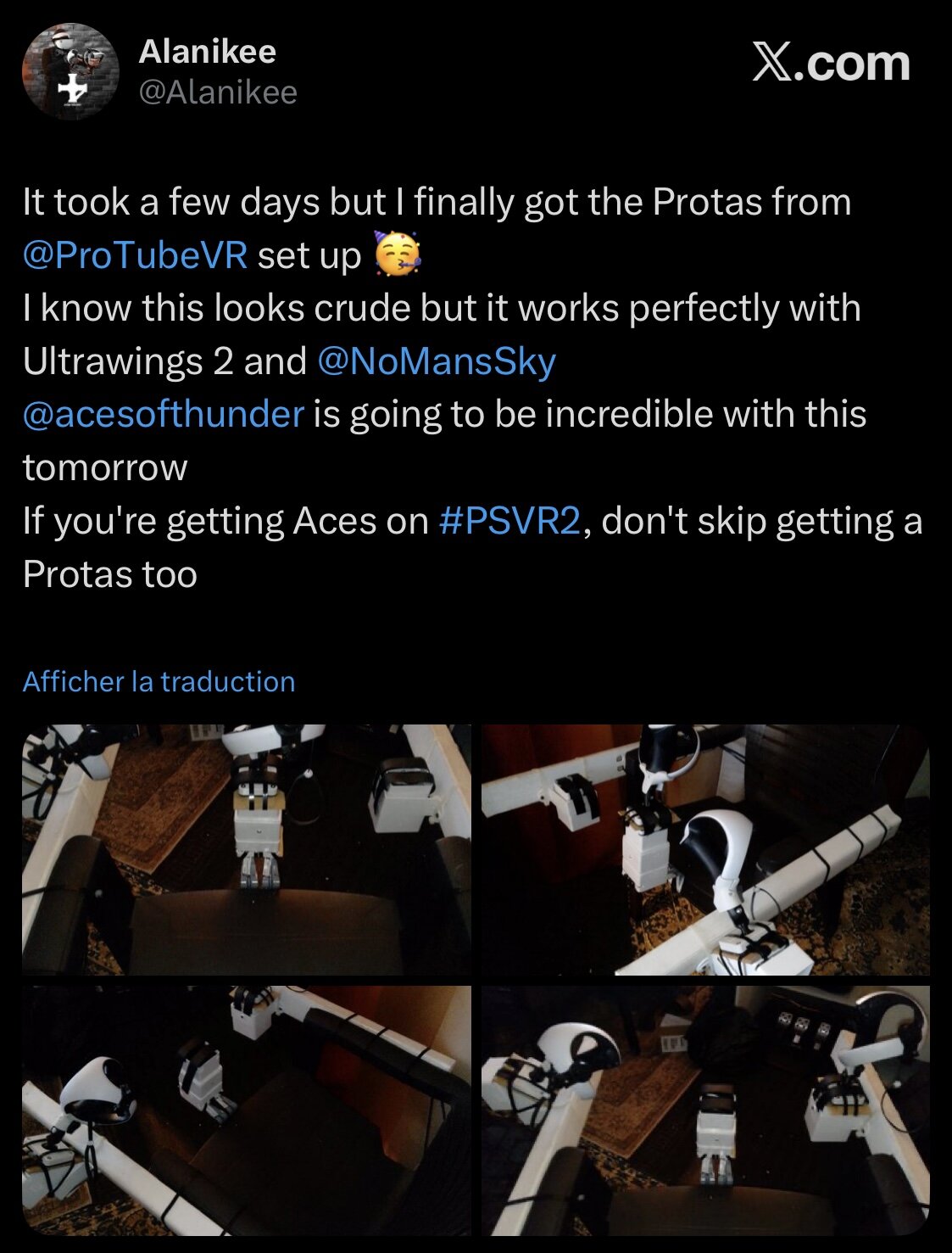 Traditionnal users of No Man's Sky, Ultrawings 2 or DigVR are already showcasing how the ProTas integrates into their PSVR2 kit to create a professional-grade cockpit at home.