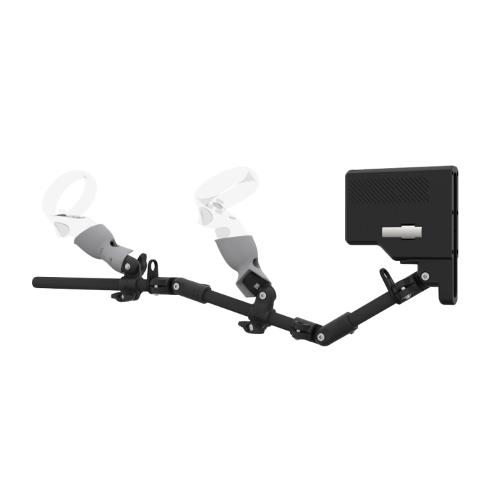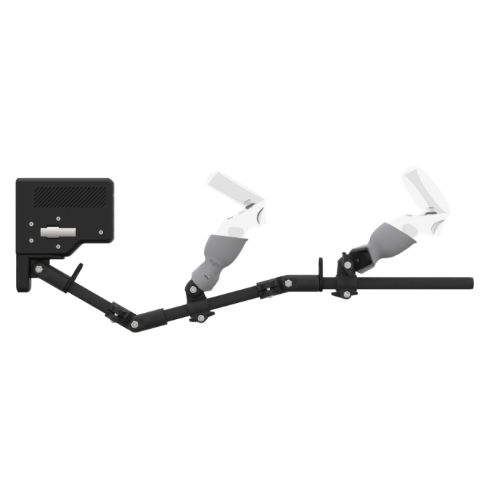 - Gunstock polyvalent : Armature réglable avec plusieurs points d’articulation pour s’adapter à toutes les morphologies, longueurs de bras et fusils virtuels.