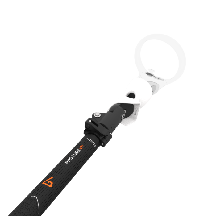 Close view of Swing It VR golf club for Meta Quest 1 Carbon Armature and White PLA cups Left hand
