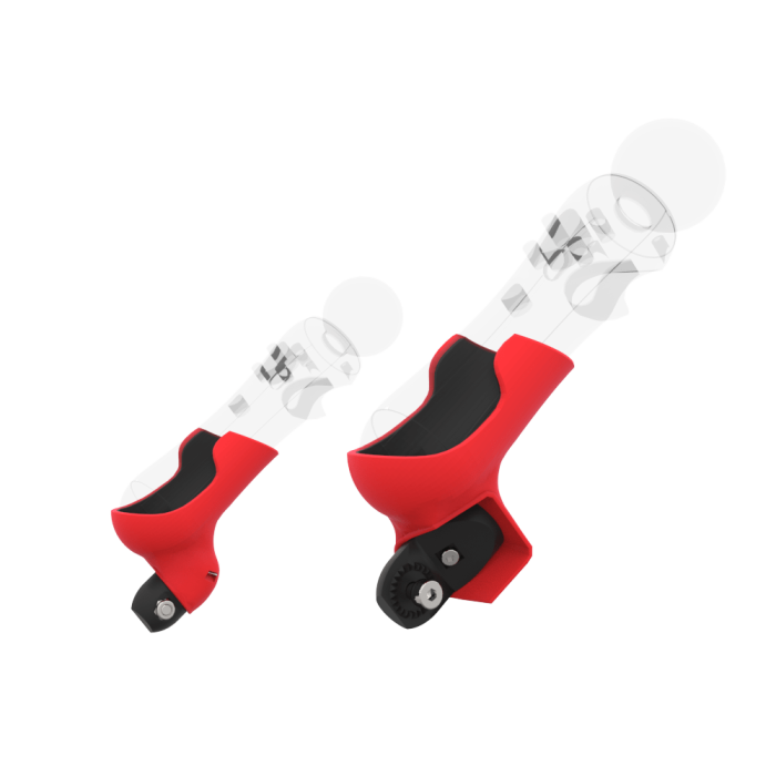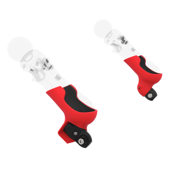 Right view of Pair of Red PLA cups Controller mount spare parts for PSVR 1 with Fastened Attachment