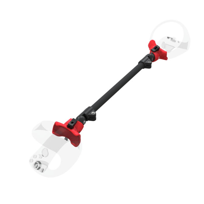 Fixez fermement vos manettes PlayStation VR 2 dans les supports attachés, avec les sangles autour de l’armature du ProSaber.