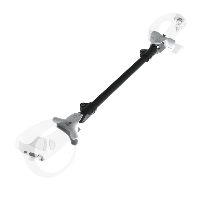 Fixez fermement vos manettes PlayStation VR 2 dans les supports attachés, avec les sangles autour de l’armature du ProSaber.