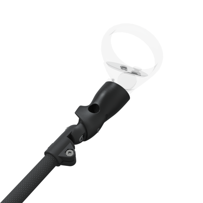 Fixez fermement vos manettes Meta Quest 2 dans les supports attachés, avec les sangles autour de l’armature du ProSaber.