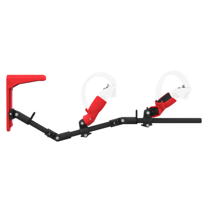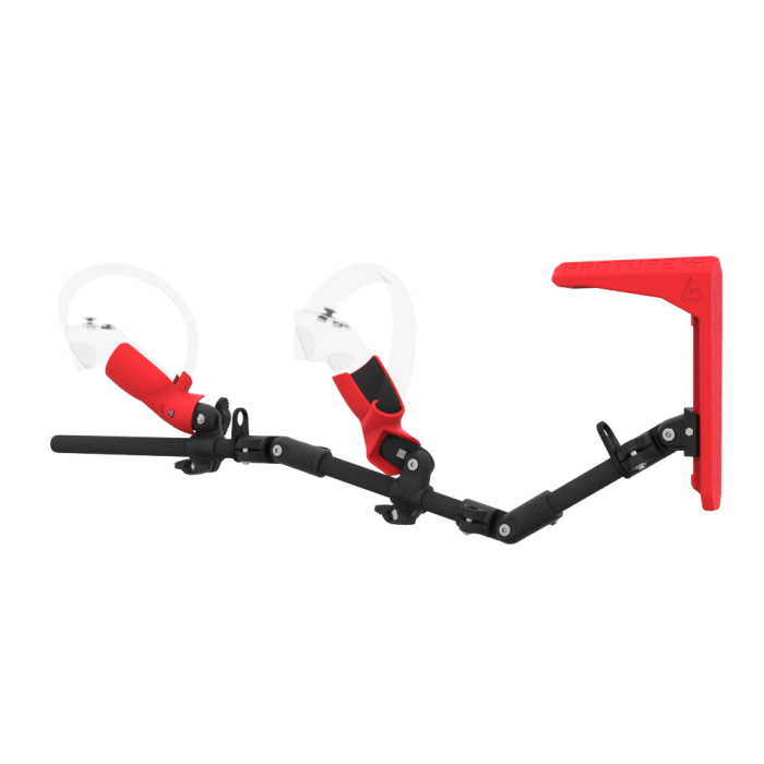 Left view of MagTube vr gunstock for Pico 4 with Carbon Armature with Red MK2 Buttstock and Red PLA cups