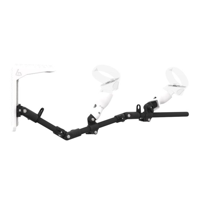 - Gunstock polyvalent : Armature réglable avec plusieurs points d’articulation pour s’adapter à toutes les morphologies, longueurs de bras et fusils virtuels.
