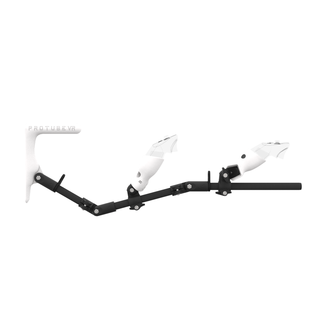 Left view of MagTube vr gunstock for Pico 4 Ultra with Carbon Armature with White MK1 Buttstock and White PLA cups