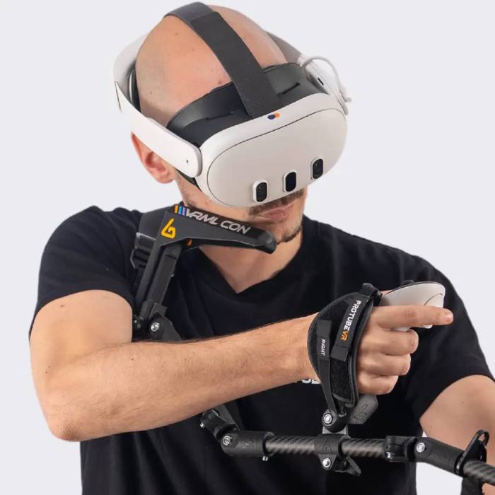 - Gunstock polyvalent : Armature réglable avec plusieurs points d’articulation pour s’adapter à toutes les morphologies, longueurs de bras et fusils virtuels.