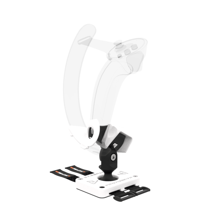 Insérez votre manette Valve Index dans le support et clipsez-la sur l’aimant du joystick. Vous pouvez maintenant piloter avec fluidité.