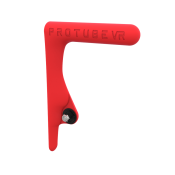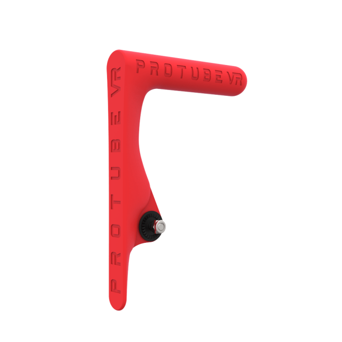 Side view of original MK1 static non-haptic red vr gun buttstock for shoulder point of contact