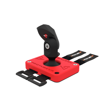 left view of red vr joystick protas base without controller cup with ProTubeVR logo