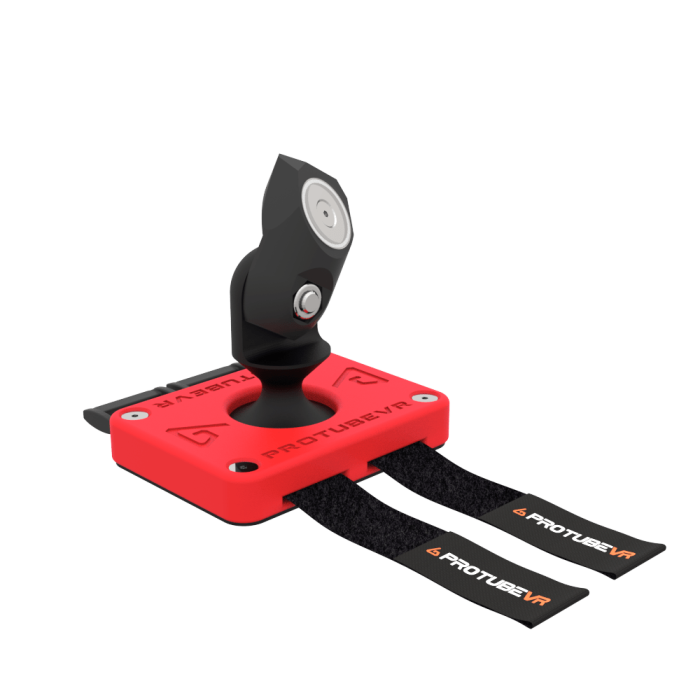 right view of red vr joystick protas base without controller cup with ProTubeVR logo