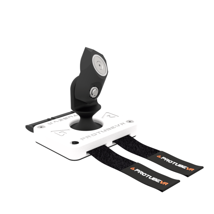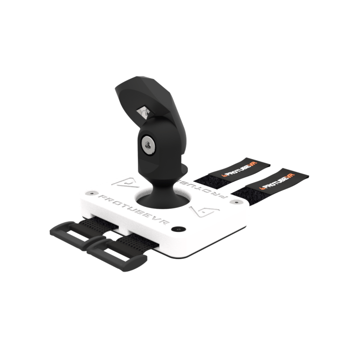 right view of white vr joystick protas base without controller cup with ProTubeVR logo
