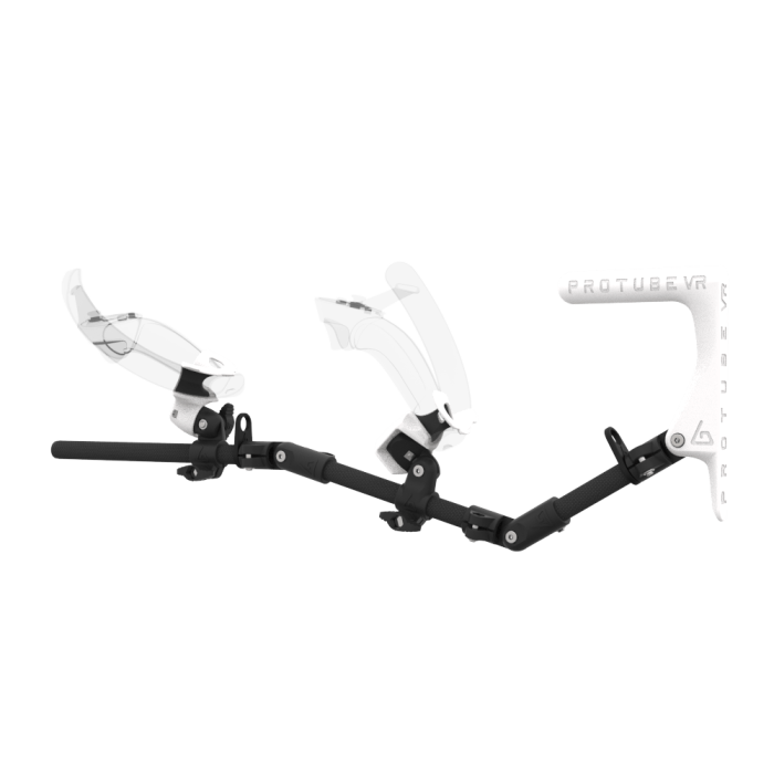 - Veelzijdige gunstock: Verstelbaar frame met verschillende articulatiepunten om zich aan te passen aan elke lichaamsgrootte, armlengte en elk virtueel geweer.