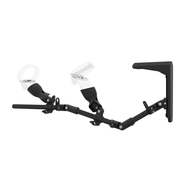 - Wielofunkcyjny uchwyt na broń: Regulowana konstrukcja z kilkoma punktami artykulacji dostosowuje się do każdego rozmiaru ciała, długości ramion i każdego wirtualnego karabinu.
