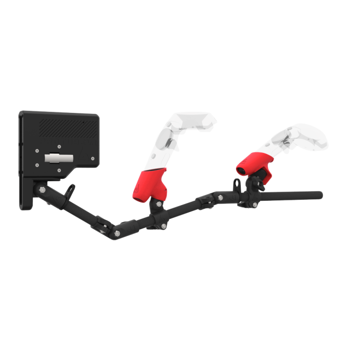 • Szybkie przeładowania: Odkręć uchwyty kontrolerów HTC Vive, aby je odczepić, przeładować lub wykonać inne czynności, a następnie ponownie je przypnij do stelaża.