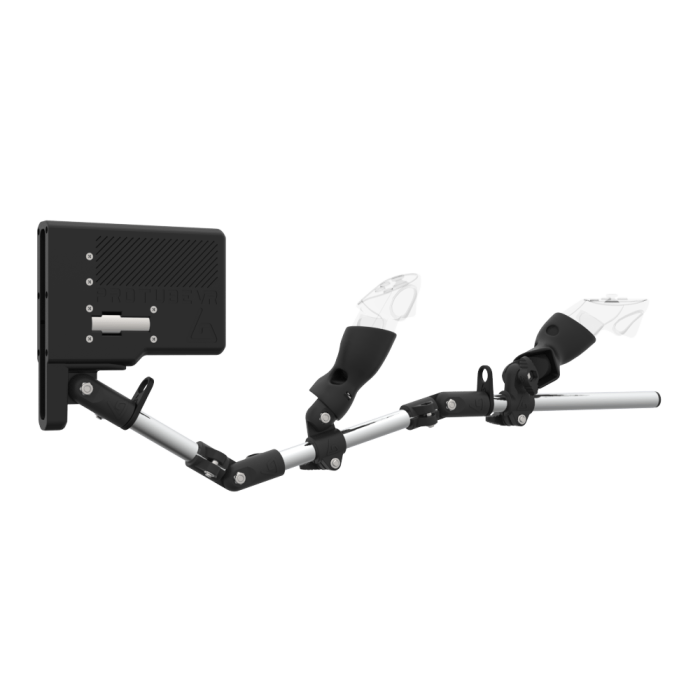- Uniwersalny chwytak do broni: Regulowany stelaż z kilkoma punktami artykulacji, aby dostosować się do każdego rozmiaru ciała, długości ramion i dowolnej wirtualnej broni.